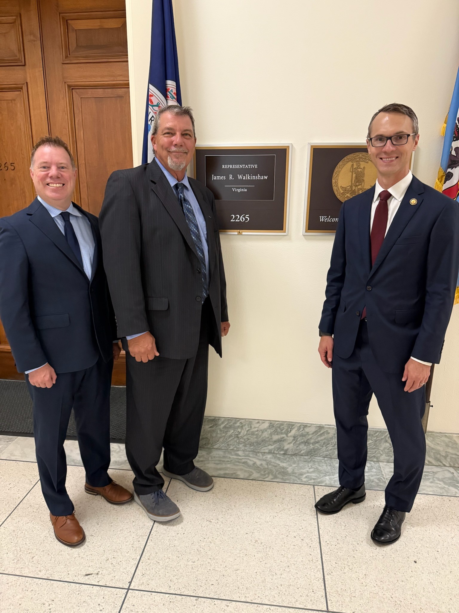 FMA National President Craig Carter and Director of Government Affairs Greg Stanford meet with Rep. James Walkinshaw (VA).